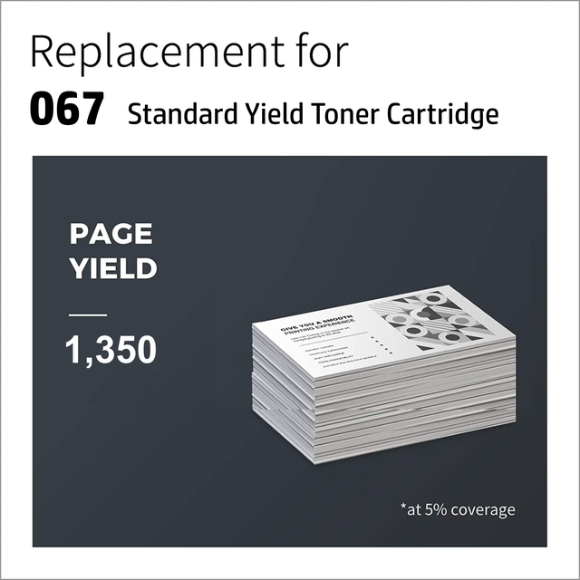 ЖОРСТИЙ КАРТРИДЖ CANON 067H YELLOW Лазерний картридж із жовтим тонер порошком, стандартна ємність. місткість: 90 грамів, Ресурс: ~ 2350 сторінок за 5% заповнення аркуша формату А4 |